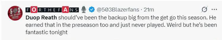 Phương tiện truyền thông Blazers cho biết: "Sự xuất hiện của Reese đã thay đổi trận đấu. Anh ấy nên luôn chơi với tư cách là người thay thế chính." Điều này cũng hàm ý rằng Yang Hansen không đủ điều kiện để luân chuyển.